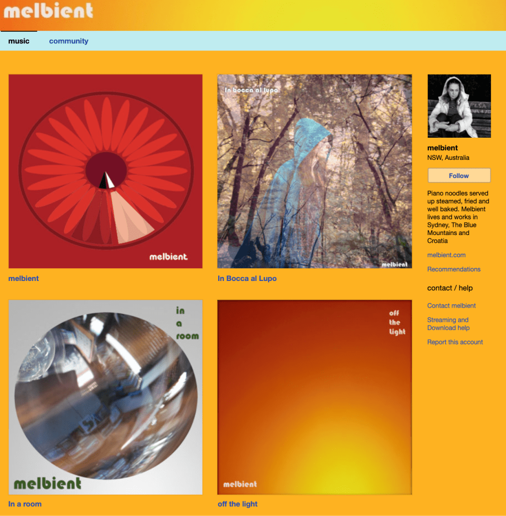I have just completed the remixed masters of four melbient albums for Bandcamp. The ambient and experimental albums feature some beautiful work from melbient aka Missi Mel Pesa.