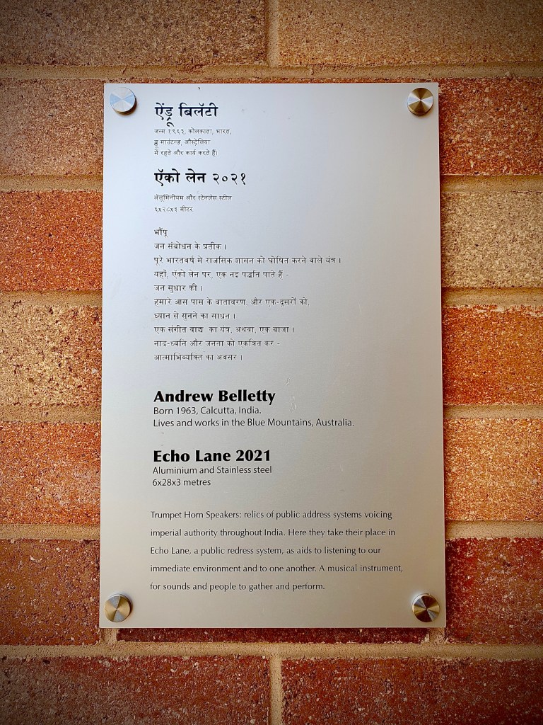 Echo Lane is an experimental site activation across Davies Lane based upon the Indian Trumpet Horn, a ubiquitous feature of my homeland, designed to project sound across long distances with minimal effort. The concept behind the work builds upon ancient ideas of deep listening. This new work will animate the relationship between sound, place, time, and history, by amplifying sounds from within and without the site, bringing them into the laneway acoustically.